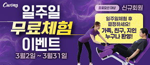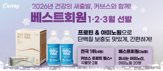 [참여기간] 2026년 3월 1일~3월 31일 (1개월) 인원추첨 4월 2일 시상품 발송 4월 3일 [추첨대상] 3월 중 운동 출석 총 13회를 달성한 커브스 회원 중 무작위 추첨 [시상품] 총 1,015명 당첨 및 시상 EMS 윤곽 리프팅 디바이스 (15명) 커브스 보틀 앤 파우치 (400명) 커브스 스포츠 중목양말 (600명) 커브스 모바일 홈페이지(클릭) 로그인 → 간편하게 출석체크 후 운동하세요! [나의 회원카드 로그인 하러 가기] ▼▼3월, 이 이벤트도 눈여겨 보세요!▼▼ ![]() 커브스 일주일 무료체험 이벤트(~3/31) 3월 한 달 30분 순환운동 커브스를 일주일간 무료로 체험 후 결정하세요! ▶이벤트 자세히 보기(클릭) ![]() 1~3월 베스트회원 선발(~3/10) 전국 1위 프로틴 헬스+ 곡물맛 2통, 일반 베스트회원 아미노원 20병 증정 ▶이벤트 자세히 보기(클릭) ![]() 2026 바디프로필 챌린지(~6/30) 커브스를 빛낼 모델이 되어주세요! 2026년 7월 중 발표 및 촬영 ▶이벤트 자세히 보기(클릭) 커브스 20주년 깜짝 ★출석체크★ 이벤트 ![]() 출석하고! 운동하고! 선물받고! 커브스 20주년을 맞이하여 깜짝 출석 이벤트를 준비했습니다. 열출서해서 운동과 선물 일석이조의 행운을 가져가세요~! [참여기간] 2026년 2월 1일~2월 28일 (1개월) 인원추첨 3월 5일 시상품 발송 3월 6일 [추첨대상] 2월 중 운동 출석 총 13회를 달성한 커브스 회원 중 무작위 추첨 [시상품] 총 1,015명 당첨 및 시상 EMS 윤곽 리프팅 디바이스 (15명) 커브스 보틀 앤 파우치 (400명) 커브스 스포츠 중목양말 (600명) 커브스 모바일 홈페이지(클릭) 로그인 → 간편하게 출석체크 후 운동하세요! [나의 회원카드 로그인 하러 가기] ▼2월, 이 이벤트도 눈여겨 보세요!▼ ![]() 커브스 회원권 1+1 이벤트(~2/28) ▶이벤트 자세히 보기(클릭) 전세계의 여성들이 건강해지는 그날까지 커브스는 회원님들과 함께 합니다! ▼가까운 커브스 클럽 무료체험 신청▼ ![]() ![]() |