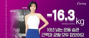 저는 작심삼일이 아니라 작심 세 시간인 사람이거든요. 커브스에서 주 3회 이상 30분 꾸준히 운동하시면 천천히라도 분명하게 몸의 변화가 있을 거라고 생각을 하거든요. 제가 좋아하는 노래 가사 중에 '계속 버티다 보면 언제가 웃는 날이 올 거다' 라는 그런 노래 가사가 있어요. 정말로 계속 버티면서 꾸준히 운동하시다 보면 분명히 원하시는 목표를 이룰 수 있고 또 웃을 수 있는 그런 날이 올 거라고 생각을 합니다. 커브스 회원 분들 모두 다함께 건강해지시기를 바라겠습니다. 힘내세요!