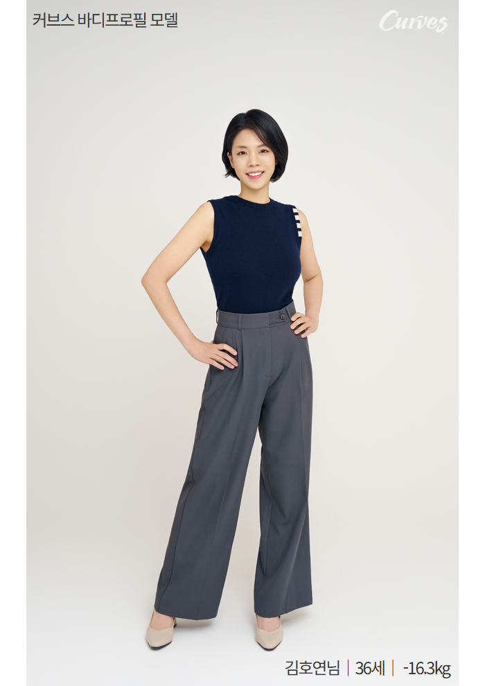 커브스는 근력운동이랑 유산소운동을 같이 할 수 있어서 30분 집중해서 운동을 할 수 있는데 저는 커브스의 인터벌 운동이 굉장히 저한테 잘 맞았어요. 그래서 처음에는 눈에 보이게 살을 뺄 수가 있었고 지금은 근력을 좀 붙이면서, 근력 높이고 건강하게 운동하는 것을 포커스로 운동을 하고 있습니다. 꾸준한 운동으로 인해서 몸에 균형이 잡히고 몸의 바디 라인이, 선이 좀 예뻐졌다는 말을 굉장히 많이 들었어요. 그리고 최근 5년간 지금의 체중을 유지하면서 운동을 계속 하고 있고, 30분을 집중하는 건강한 운동 습관을 만든 것 같습니다.